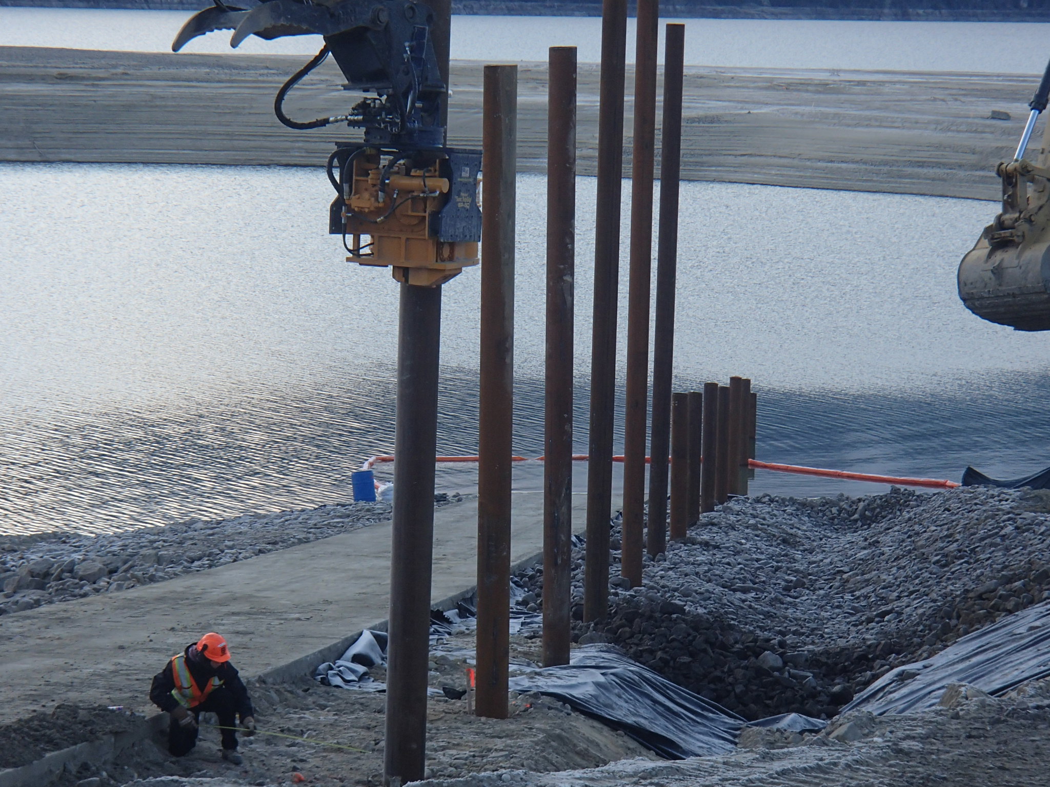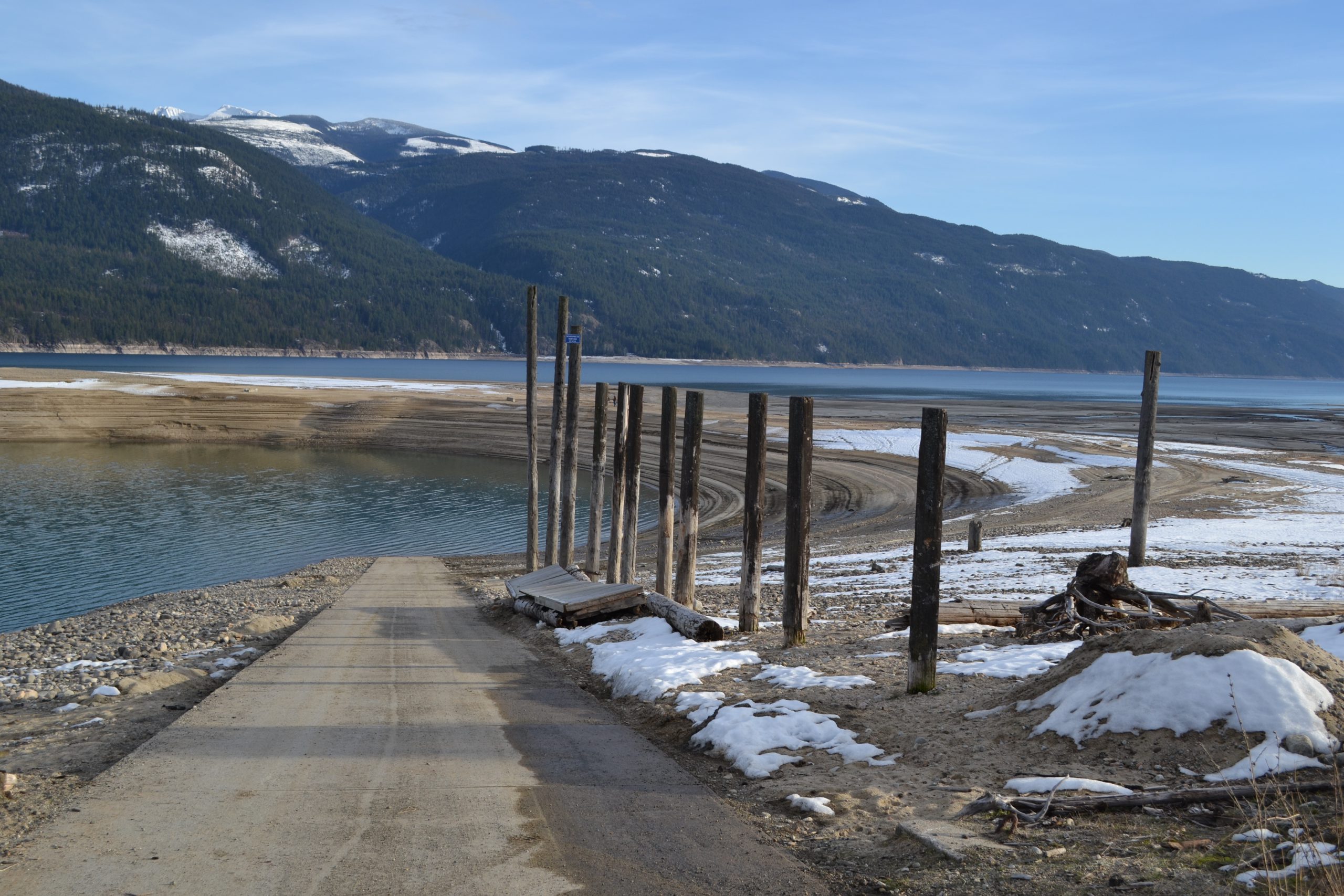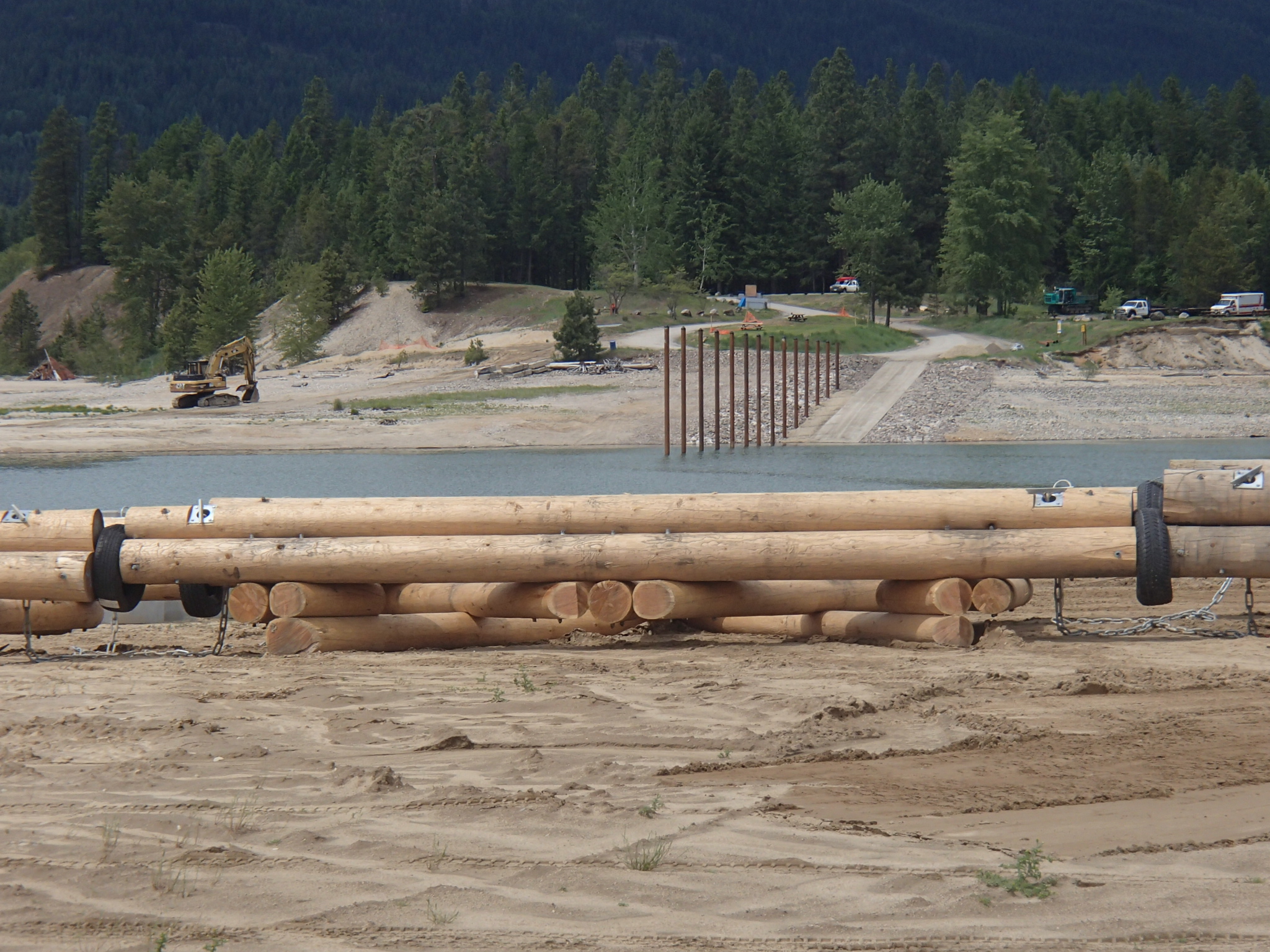 KootenaysSCES was contracted by Columbia Power Corporation to upgrade the Arrow Reservoir Boat Launch at Edgewood, BC. The project included the installation of rip rap protection, new steel piles and walkway on the existing boat launch. In addition to the launch improvements, an integrated log breakwater system was also installed. Pre-cast anchor blocks for the breakwater were placed with an 80 tonne crane working from a barge.