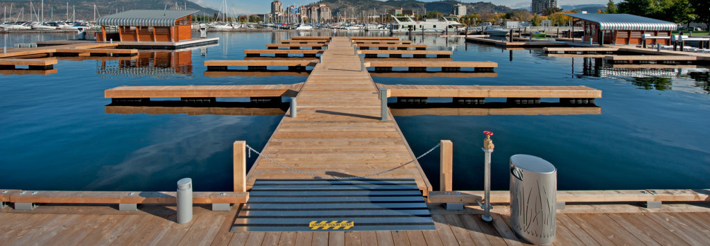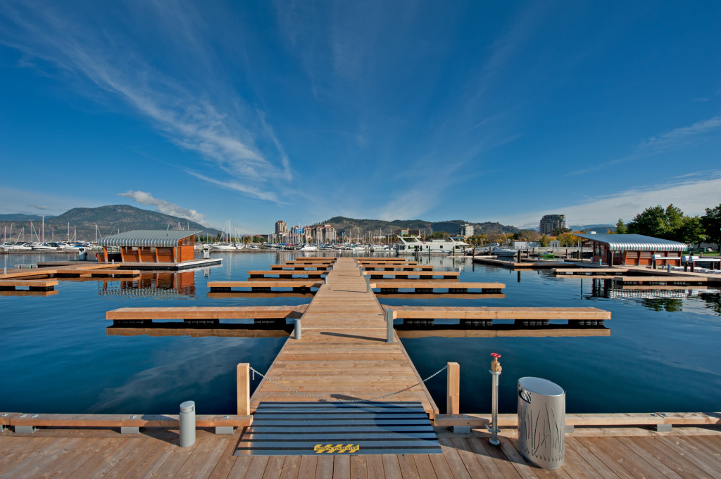 OkanaganThis 70 slip marina is adjacent to Kelowna City Park and provides full services to recreational boaters. The marina includes designated moorage and day use areas to attract the boating community to downtown Kelowna. The marina design incorporates utility supply lines for water, electrical, fuel, and sanitary and accommodates a wide range of watercraft including houseboats. Anchored with steel piles and concrete blocks, the dock system provides a breakwater which has performed well since its installation in 2013.